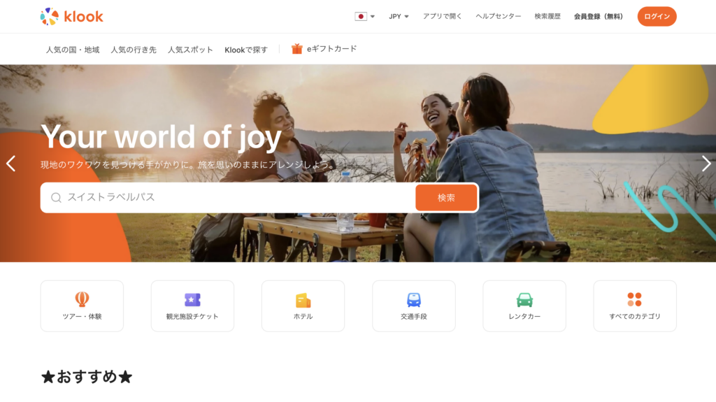 - おすすめポイント: 「遊び・体験」予約も強く、Klookと並んでアクティビティ探しに重宝します。