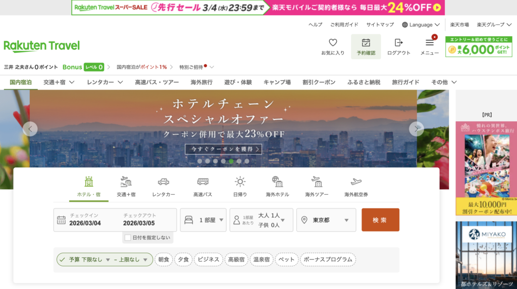 「楽天経済圏」の住民なら最強の宿泊予約サイト