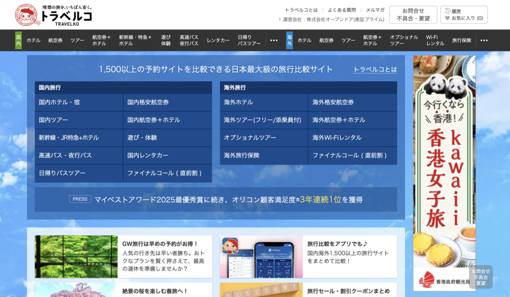 - おすすめポイント: 航空券+宿のセットプランの比較が非常に優秀で、格安旅行を組む際の必須ツールです。