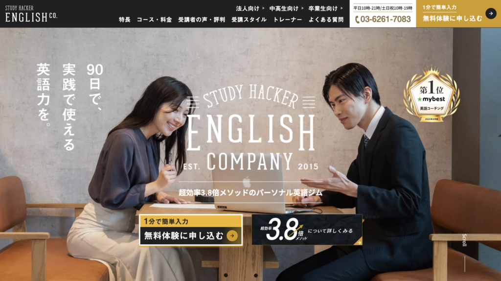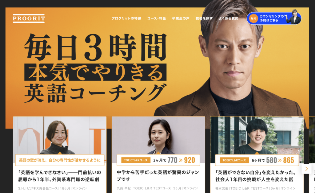 - ポイント: 根性論ではなく「脳が言葉を理解する仕組み」に基づいたトレーニング。1日1.5時間程度の学習で、他社の3時間分に匹敵する成果を目指します。