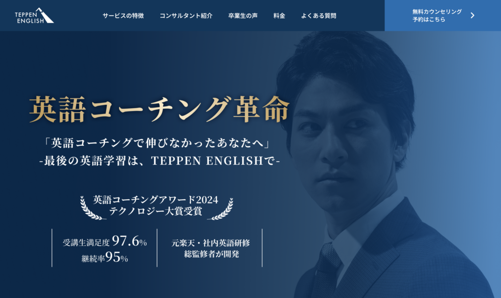 | 5位 | TEPPEN ENGLISH | 3ヶ月 | 約29.7万円 | 中上級者特化。成果が出なければ全額返金保証 |