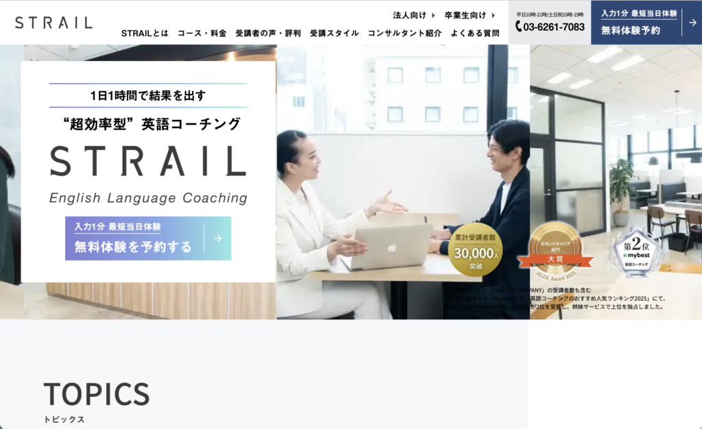 | 7位 | STRAIL (ストレイル) | 3ヶ月 | 約33.6万円 | コンサル特化。自習の質を極限まで高める |