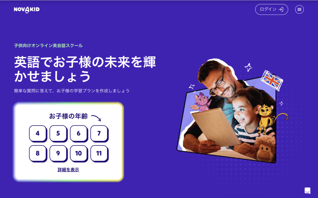 | 2位 | Novakid (ノバキッド) | オンライン英会話 | 4〜12歳 | 全講師が資格保有。ゲーム感覚の授業 |