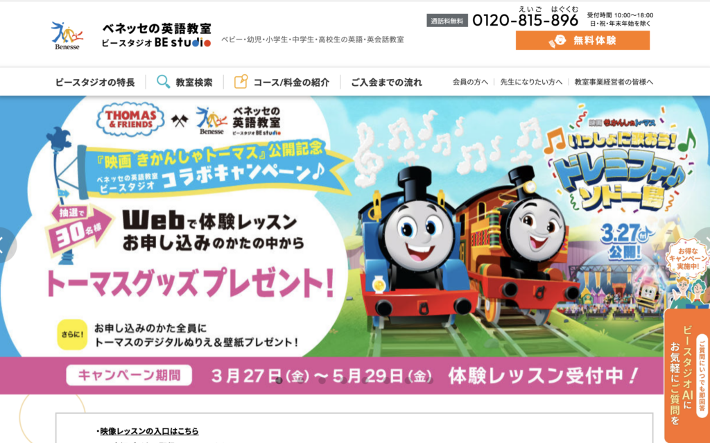 | 4位 | ベネッセ BE studio | 通学型・ホーム | 9ヶ月〜 | しまじろうと一緒に楽しくスタート |