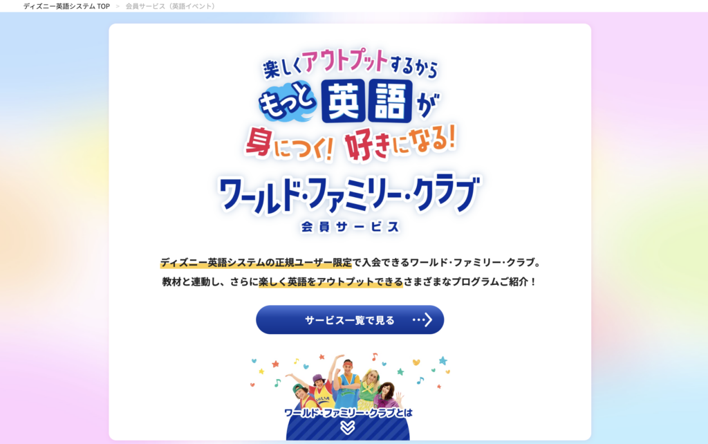 - 特徴: DWEユーザー専用の会員組織。毎週末、全国でネイティブ先生によるショーやキャンプが開催されます。