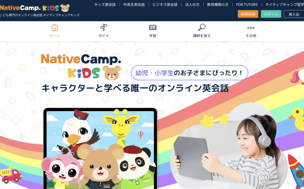 | 7位 | ネイティブキャンプ キッズ | オンライン英会話 | 3歳〜 | 予約不要・回数無制限で遊び放題 |