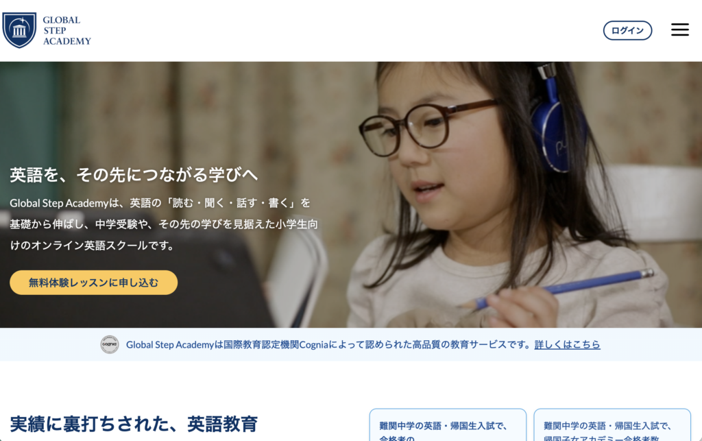 | 10位 | グローバルステップアカデミー | オンライン (インター) | 3〜15歳 | 日本にいながらインター校の教育を |