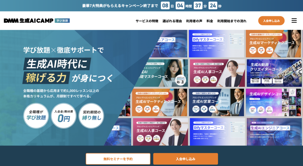 3位DMM 生成AI CAMP開発×AI実装の上級コースが強力8週間〜330,000円〜