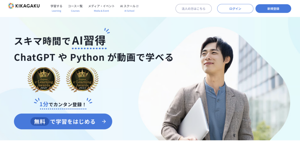 • 特徴: エンジニア志望だけでなく、ビジネスを加速させたい層にも人気。240以上の最新AI講義が受け放題です。