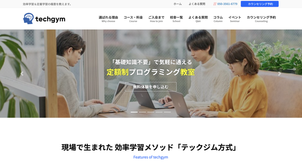 • 特徴: 「授業をしない」自習特化型。現役講師が常駐し、Pythonの基礎からAI開発まで月額定額で学び放題です。