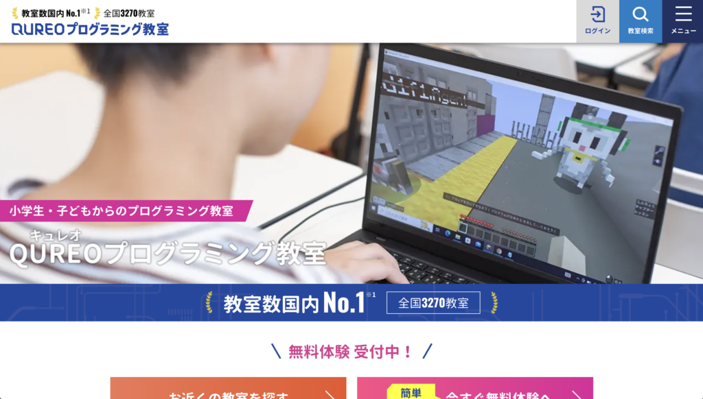 | 2位 | QUREOプログラミング教室 | 通学 | 約9,900円〜 | 教室数No.1。本格ゲーム作り |