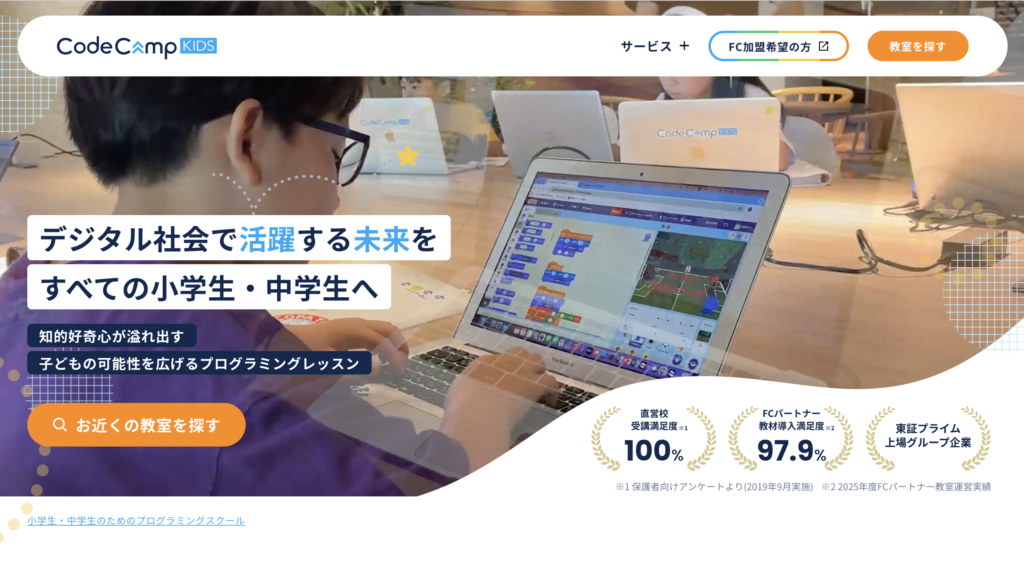 | 7位 | Code Camp Kids | 通学/オンライン | 約11,000円〜 | 楽しさ重視。本格的なUnityも学べる |