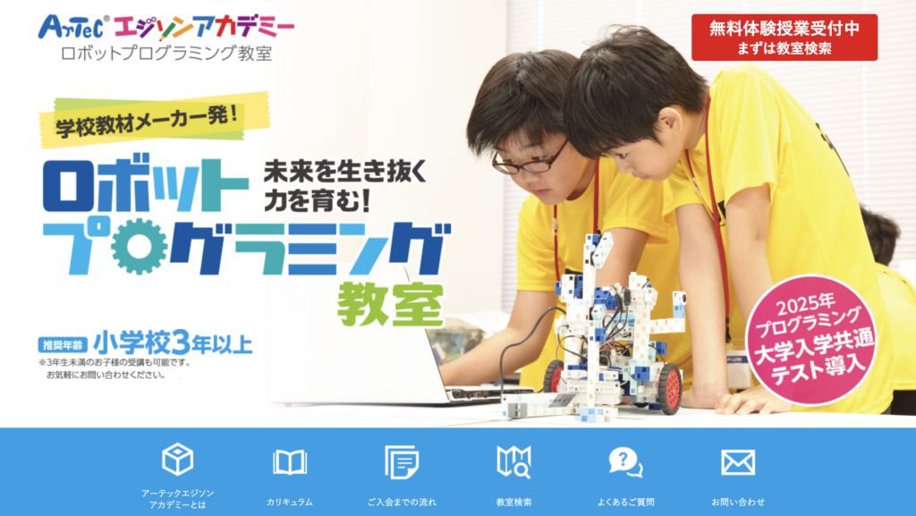 | 8位 | アーテックエジソンアカデミー | 通学 | 約11,000円〜 | ブロック遊びの延長で本格ロボット |