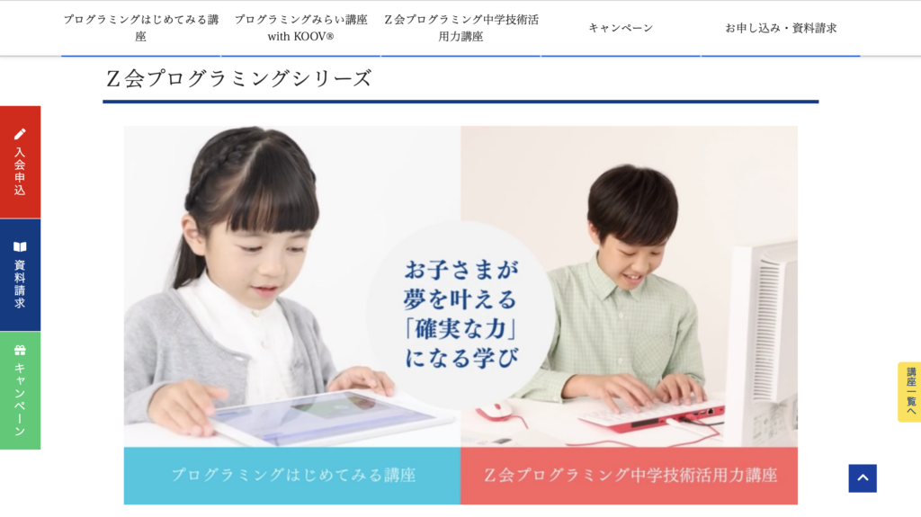 | 10位 | Z会プログラミング講座 | 通学/通信教育 | 約5,000円〜 | Z会の思考力を養うカリキュラム |