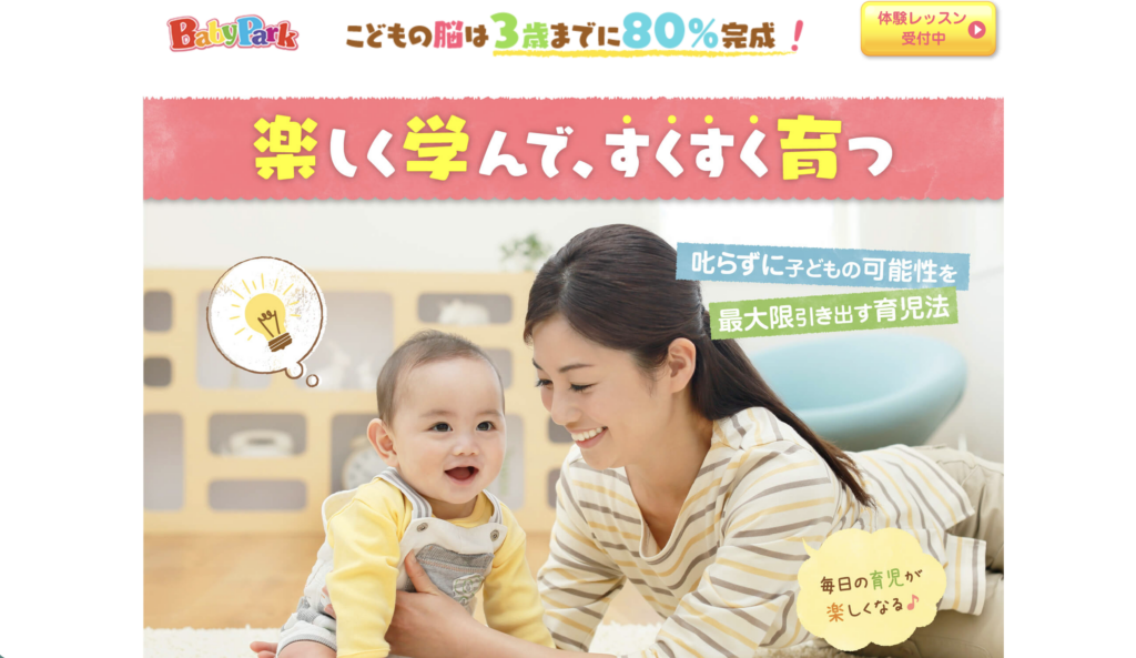 | 1位 | ベビーパーク | 親子教室・知能開発 | 0歳2ヶ月〜3歳 | 約17,435円〜 |