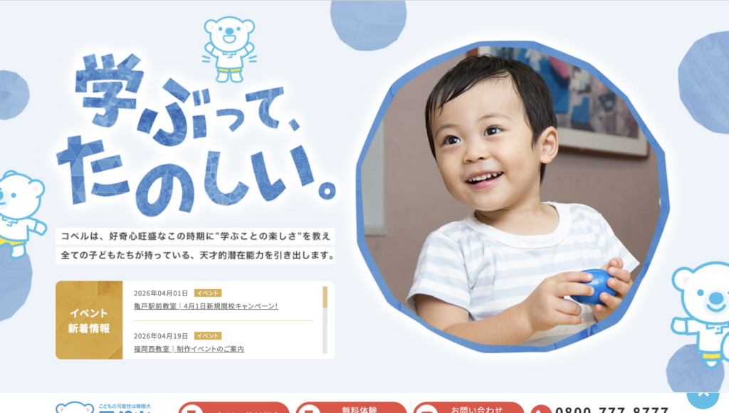 | 4位 | コペル (Copel) | 右脳教育・好奇心育成 | 0歳〜 | 約21,450円〜 |