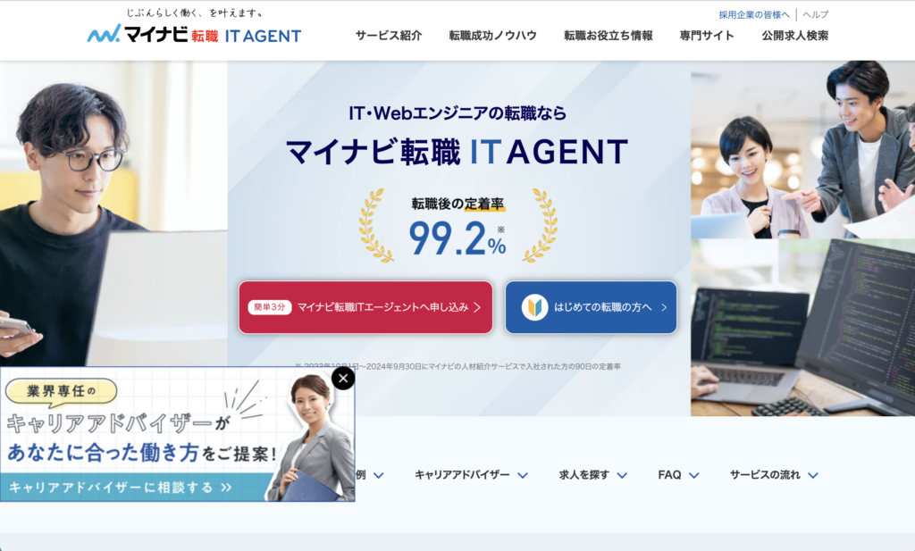 • 特徴: 大手マイナビのネットワークを活かし、SIer、社内SE、大手企業のIT部門など幅広い求人を網羅。キャリアアドバイザーの丁寧なカウンセリングに定評があります。