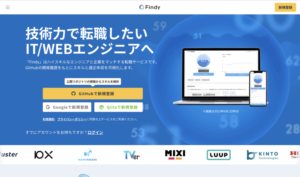 9位Findy (ファインディ)Webエンジニア非公開GitHub連携で「スキル偏差値」を可視化
