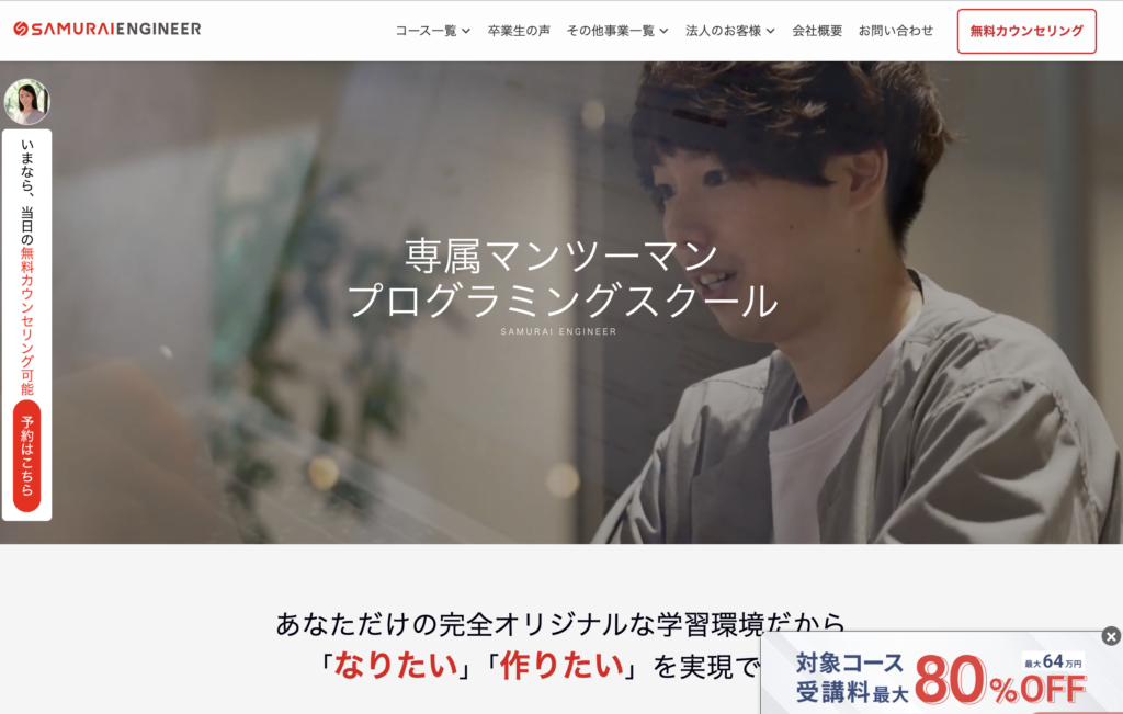 SAMURAI ENGINEERフルオーダー20万〜現役エンジニアによるマンツーマン指導が売り