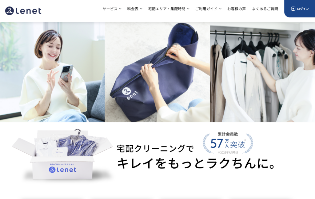| リネット (Lenet) | クリーニング | 1点 400円台〜 | 宅配クリーニングの先駆け。仕上がりが早い |