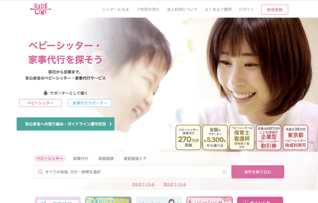 - 特徴: 育児のプロに家事も頼める柔軟性。24時間即時予約可能で、急な仕事や体調不良時の心強い味方です。